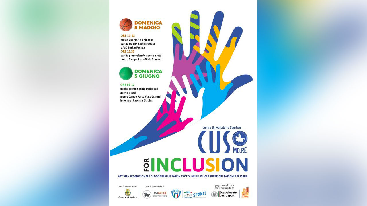 Entrando nel merito di questi bellissimi progetti, apriamo un piccolo spaccato su quello del CUS dell’Università degli Studi di Modena e Reggio Emilia, dal titolo CUS Mo.Re For Inclusion!, in programma domenica 8 maggio e domenica 5 giugno, che vedrà protagoniste le discipline del baskin e del dodgeball. Il progetto si avvale del patrocinio: delle Società di baskin e dodgeball della Regione Emilia-Romagna che vogliono far conoscere e diffondere la pratica del loro sport; dell’Ente Italiano Sport Inclusivi (EISI), realtà multidisciplinare aperta a tutti gli sport; dell’Università di Modena e Reggio Emilia (Unimore), da sempre attenta alla pratica dello sport come forma di integrazione e supporto nelle relazioni interpersonali e del Comune di Modena, che metterà a disposizione due campi in parchi pubblici all’aperto per lo svolgimento dei due eventi promozionali. “Con CUS Mo.Re for Inclusion! – ha detto il responsabile Leonardo Zanfi – intendiamo sensibilizzare innanzitutto i giovani all’importanza di fare sport. L’attività del baskin sarà un’incredibile opportunità di integrazione sia per persone con disabilità che per tutti coloro che cercano nello sport uno scopo che vada oltre il solo aspetto agonistico di praticare un’attività sportiva che incentiva e permette la relazione e la socializzazione, oltre alla promozione di sani stili di vita. Il dodgeball, grazie alla sua facilità di regole e praticità, sarà invece un’innegabile veicolo di integrazione e un facilitatore nella creazioni di rapporti di socialità anche per chi ha difficoltà di comunicazione dovute alla non conoscenza della lingua italiana”.