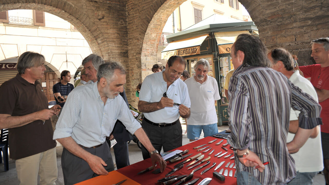“Lame sotto i Portici”, la mostra dei coltellinai d’Italia che ogni anno si tiene all’ombra dei portici di Romano di Lombardia (Bg) – portici che mensilmente ospitano anche un mercatino dell’antiquariato – deve le sue origini, nel 2000, alla collaborazione tra soci della locale Sezione AVIS appassionati di “cose belle”, l’allora capo redattore della rivista TAC Armi e un giovane collezionista che amava scrivere articoli sui coltelli custom. Un vero e proprio manipolo di appassionati che operava in una cittadina che, storicamente, non aveva nulla a che vedere con la costruzione delle lame. Caratteristica che al tempo era riscontrabile invece nella quasi totalità dei luoghi che organizzavano mostre sulla coltelleria.