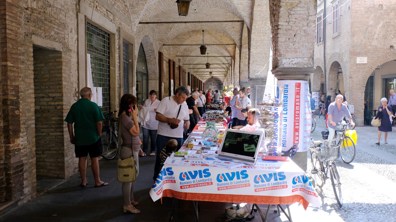 Dal canto suo, AVIS, con il prezioso supporto dei volontari, cerca di coccolare gli espositori, fornendo il servizio di ristoro, in una cornice, quella degli storici portici di Romano, che ben si sposa all’evento.