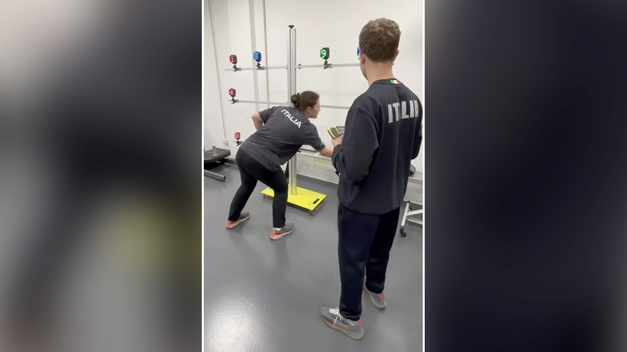 La stagione agonistica 2025 del tiro a volo italiano è stata impreziosita da numerosi successi internazionali, ultimo dei quali, in ordine di tempo, la medaglia d’oro conquistata da Massimo Fabbrizi e Alessia Iezzi nel mixed team al Campionato del mondo di Atene lo scorso ottobre. Nel periodo compreso tra la rassegna iridata e la Finale di World Cup in programma a Doha (Qat) dal 4 al 9 dicembre, il preparatore atletico delle squadre azzurre Edoardo Kirschner ha svolto un ciclo di raduni di preparazione fisica riservati agli atleti della nazionale di fossa olimpica e skeet, un contesto che consente di curare con grande attenzione le sessioni di allenamento in previsione dell’avvio della prossima stagione agonistica 2026. Per approfondire strategia, obiettivi e contenuti di questo percorso di lavoro, gli abbiamo rivolto le seguenti domande: “Su cosa si basa la tua strategia di preparazione fisica in vista dell’avvio della stagione 2026?”; “Puoi farci l’esempio di qualche tipologia di esercizio che somministri agli atleti?” “In questo periodo di rallentamento dell’attività agonistica – ci dice Edoardo Kirschner – stiamo portando avanti progetti di grande interesse. In collaborazione con lo staff dell’Istituto di Medicina e Scienza Sport, coadiuvato dal prof. Antonio Spataro, medico federale Fitav, sono stati messi a punto protocolli di valutazione innovativi che sfruttano tecnologie adattate alle esigenze dei singoli tiratori. In passato il lavoro si concentrava quasi esclusivamente sul monitoraggio dell’efficienza fisica, elemento certamente decisivo per la prestazione in pedana. Oggi a questa dimensione affianchiamo batterie di test che simulano e analizzano il gesto tecnico. Gli atleti utilizzano la loro abituale attrezzatura, gilet e fucile compresi e vengono inserite nelle loro calzature delle solette wireless che permettono di valutare con estrema precisione la pressione esercitata dai loro piedi durante l’esecuzione dell’azione agonistica. L’obiettivo finale è di trasferire questi test in condizioni reali di gara al fine di individuare la possibile relazione tra la distribuzione del peso corporeo dell’atleta ed il centro o meno del piattello lanciato. Sono stati inseriti test baropodometrici statici e dinamici che forniscono ulteriori informazioni sulla distribuzione del peso corporeo dell’atleta sia nella stazione eretta che durante la deambulazione. Inoltre, sono state aggiunte 2 tipologie di test con il dispositivo Witty SEM per valutare la capacità di reazione del tiratore nell’individuazione di un bersaglio specifico tra diversi stimoli visivi il più rapidamente possibile. Il sistema è stato programmato per svolgere 2 diverse modalità di sfida a tempo: nella prima occorre spegnere il maggior numero di luci entro 30 secondi, nella seconda il compito è individuare 15 volte lo stesso target nel minor tempo possibile. In questi ultimi 3 mesi dell’anno gli azzurri della fossa olimpica dello skeet sono stati coinvolti in sessioni di allenamento personalizzate svolte in contesti diversificati come la palestra, soprattutto le proprie abitazioni e i relativi luoghi all’aperto (giardino e veranda) con videochiamate che permettono lo svolgimento dell’attività fisica indipendentemente dalla distanza geografica e in base alle esigenze di orario di ciascuno di loro. Al tiratore è sufficiente disporre di una stanza, di una connessione Internet e di pochi attrezzi di base (tappetino, fitball, TRX, elastici, funicella e poco altro). Questi incontri sono preziosi perché gli atleti si sentono seguiti e supervisionati ed è possibile verificare con continuità il loro stato di efficienza fisica”.